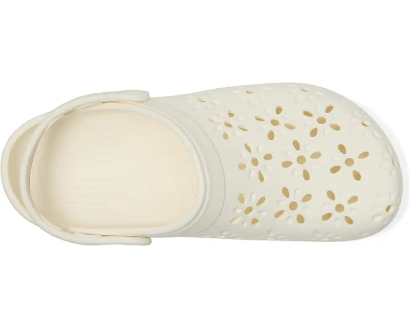 Unisex Crocs Classic Clogs with Floral Cut Out Design – Chalk