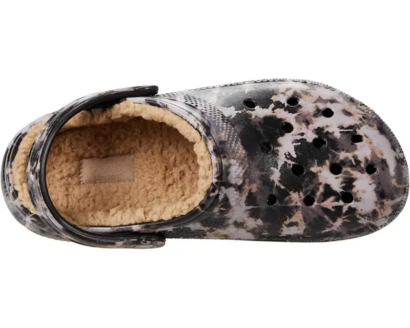 Unisex Crocs Classic Lined Tie-Dye Clog – Black/Bleach Dye