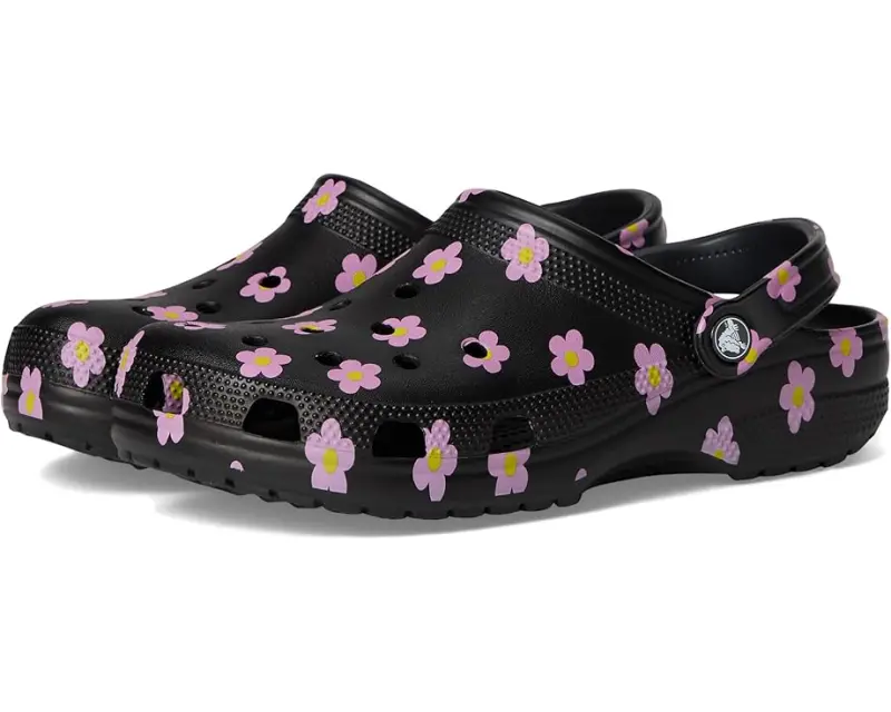 Unisex Crocs Classic Clog – Seasonal Graphic – Black/Flowers